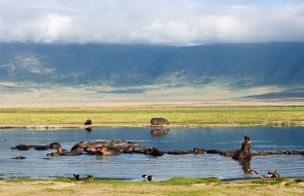 Dopo la prima colazione, scendiamo per 600 metri in questo magnifico cratere per un safari di un’intera giornata. Il cratere di Ngorongoro è una delle zone africane più affollate della fauna selvatica del mondo e ospita circa 30.000 animali tra cui alcuni degli ultimi rinoceronti neri della Tanzania. Sostenuto da un approvvigionamento idrico e da foraggio per tutto l’anno, il Parco Nazionale di Ngorongoro supporta una grande varietà di animali, tra cui greggi di gnu, zebre, bufali, elefanti, facoceri, ippopotami e elefanti africani giganti. Un’altra grande carta da disegno per questo pittoresco parco nazionale è la sua enorme popolazione di predatori, che comprende leoni, iene, sciacalli, ghepardi e il leopardo sempre inafferrabile. Ci godremo un pranzo al sacco sul pavimento del cratere.